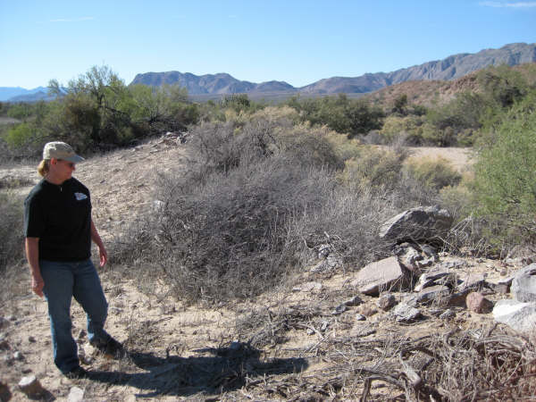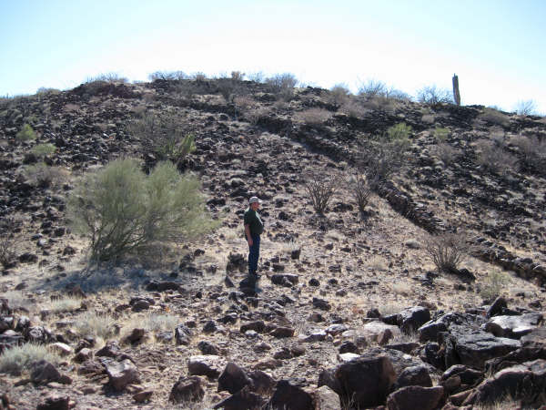2009: We find a rock and earth dam which would create a reservoir at the base of the lava mesa. A large ditch along this side of the mesa acts as a canal to bring rain water to the reservoir.