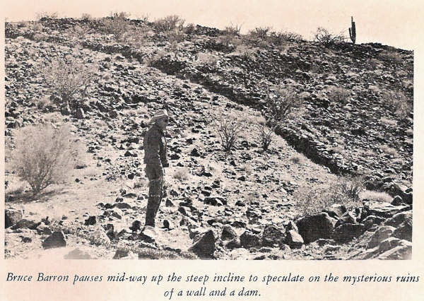 In February, 1966 a group of adventurous desert explorers lead by author Erle Stanley Gardner found a scraggly date palm, ruins of a reservoir dam, rock walls, and more while opening a new trail south of Bahia de los Angeles.