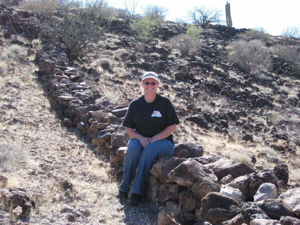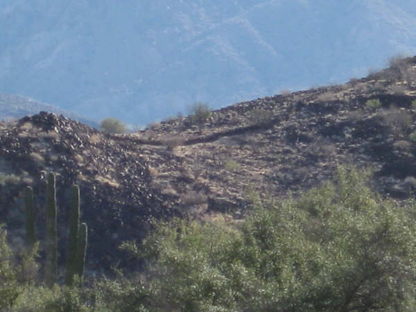 Heading back down we stop to photograph the second, smaller wall. The other one is in the background. From this point it is very steep drop to the desert. A cleared slide or chute running down here is interesting. I would guess it was where supplies were dragged up by rope.