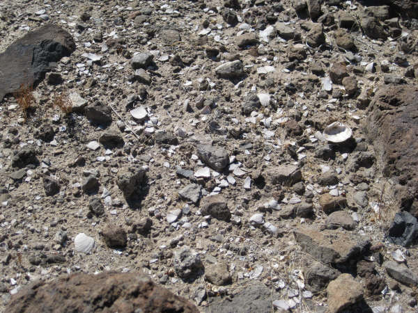 Clam and oyster shells were all over the ground, inside the rock-cleared circles, on top of the mesa.