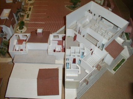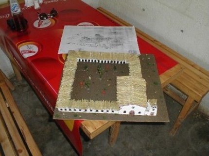 Hugo is making a model of the mission from a sketch (behind the model).