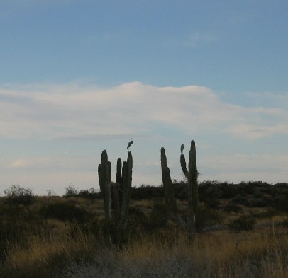 Heading back to Nuevo Mazatlan from Shell Island we pass some big birds nesting on Cardón cacti. (Bob H)