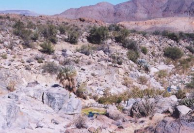 Upstream from the pool (1/3 mile), running water exits from a narrow gorge. (David K)