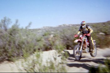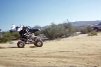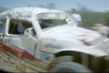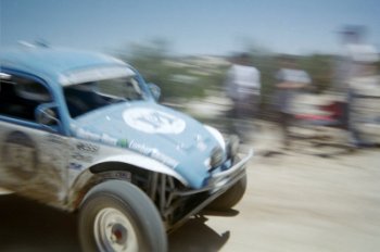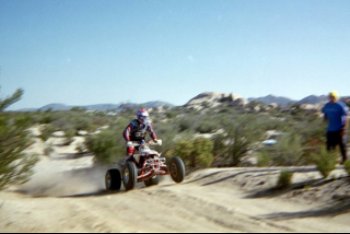 Off road racing sometimes gets close to the spectators! I think my son is too close (no telephoto, this is a disposable camera)!