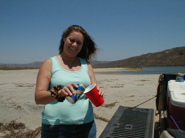 ‘Baja Angel’ pours a cold Pacifico at La Bocana.