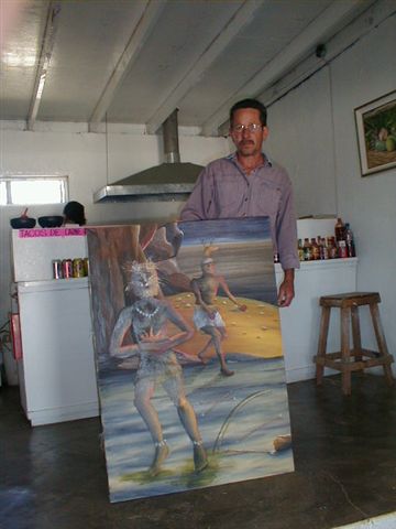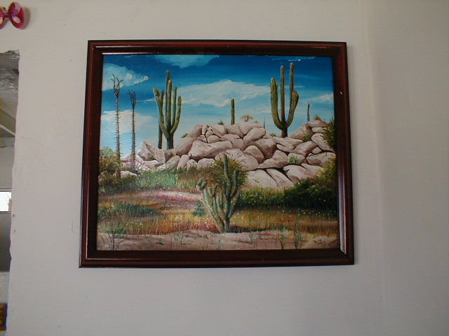 In the Baja Cactus Motel and ‘Tacos Mision’ café, are several paintings of Baja landscape and culture. They are the work of Hugo Lopez who runs the café, on the east side of town.