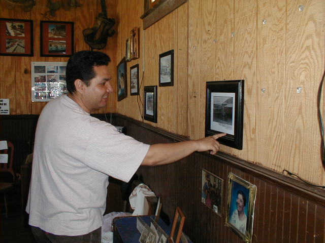 Antonio sees his family’s original gasoline selling operation in a photo taken well before World War II.