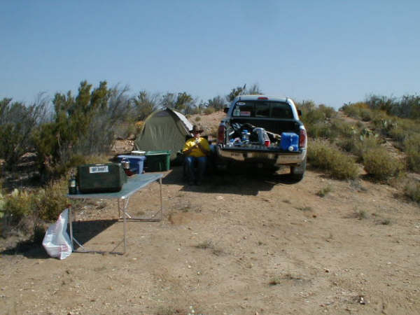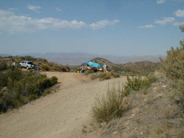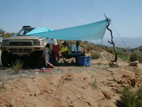 We found a spot for both rigs at the top of a steep grade, south of the valley where we could make radio contact with other Baja Pit teams.