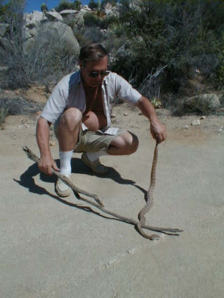 Roy checks out a poor rattlesnake that didn’t make it across the race course.