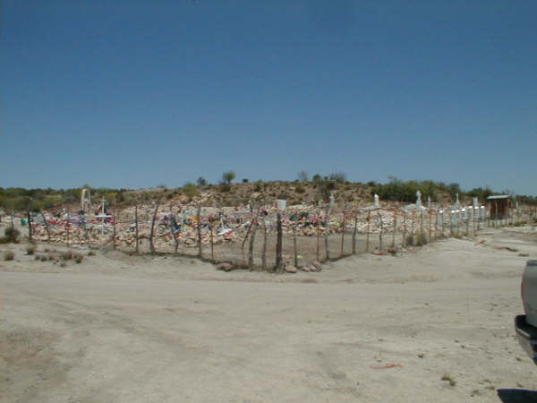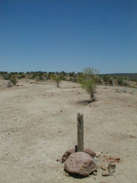 The Pai Pai Indian village of Santa Catarina is just over the rise to the right, the cemetery is just below to the left. A running stream is visible a short distance beyond. The Santa Catalina mission site is about a half mile northwest of the village.
