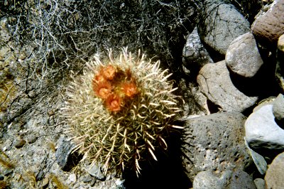 At the base of the wall, I found this flowering barrel cactus.