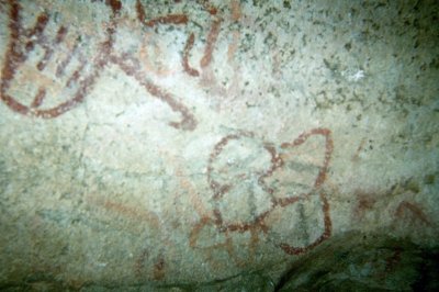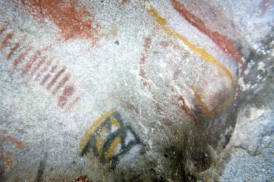The colorful native paintings have not yet been damaged. Unfortunately, the boulders outside are covered with grafitti.