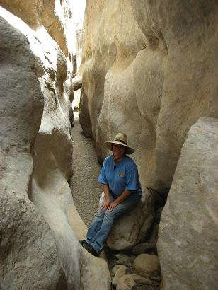 A long, narrow passage through the boulders leads to a waterfall (dry).