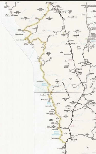 The route shown on the map is almost 200 miles and there are no services or fuel until Santa Rosalillita or beyond at Villa Jesus Maria.