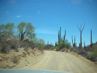 This is a good, fast graded road for the first 30 or so miles and it is fun to drive through beautiful cactus gardens.
