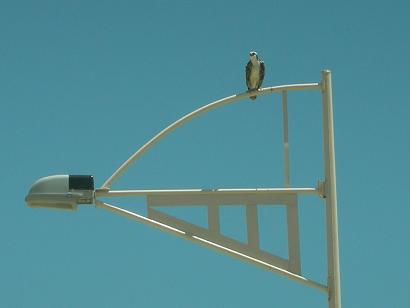 Sailboat shape street lights at Abreojos give this osprey a place to rest.