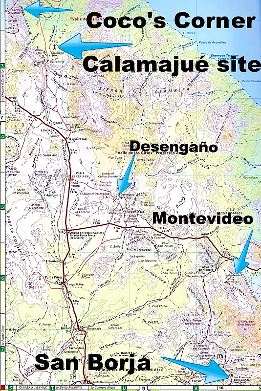 The road to San Borja is one of the most photogenic in Baja California and includes this volcano. We take a sideroad to see Montevideo, a painted cliff site