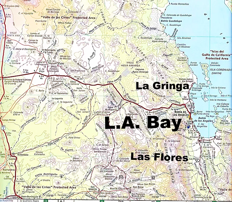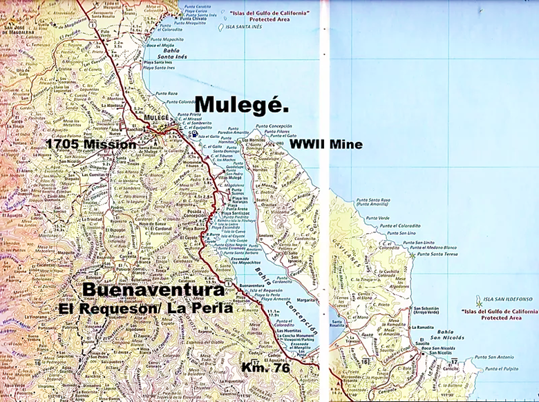 Cheeseburgers in paradise is not just a Jimmy Buffet song, at Playa Buenaventura on Concepción Bay! They want to do some serious off-roading and asked to include going up the peninsula on the other side of the bay to a manganese mine, from World War II. A tropical storm was just through here a week before and sure enough, the road was gone. We would discover that after several miles and hours driving at night! Night 5 was not in the best place, but we did okay.