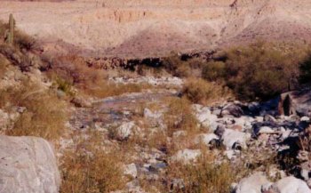 Downstream Arroyo Matomi from the pool and waterfall.