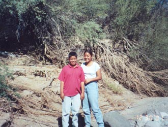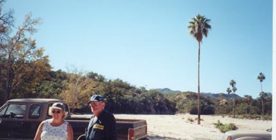 Jimmy and Mindy heading down the arroyo to Real de Santa Ana. The oldest mining ruins in Baja. The site is unmarked and hidden by vegetation.