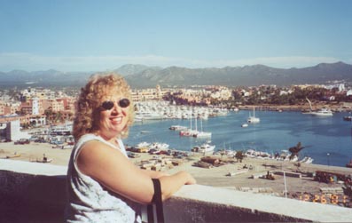Mindy enjoys the view and sunshine at Bahia Concepcion.