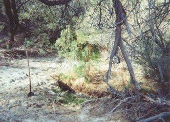Hot Spring location in Agua Caliente Canyon. Photo looking north, down the stream from where we came. The hot stream is to the left of the tub and flows hot for a good distance before joining the cool stream.