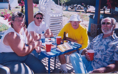 Front: Baja book author Bernie Swaim and Jim Callahan Back: David K and Fishuntr (Jim) .
