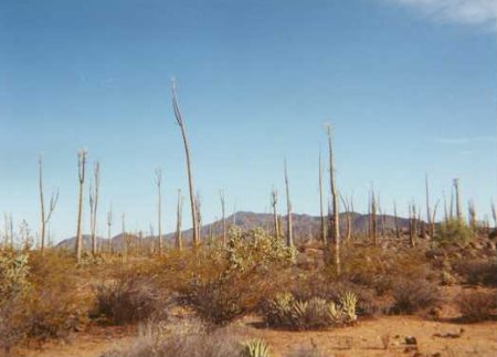 Along the road to San Juan de Dios. I love these crazy plants so much…wish I had more film! Nothing says “Baja” quite like a boojum! (7-25-00)