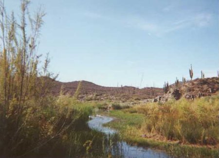 Eighteen miles from Hwy.#1, about half way to Punta San Carlos, this road turns left and follows the Arroyo San Fernando eastward. (7-24-00)