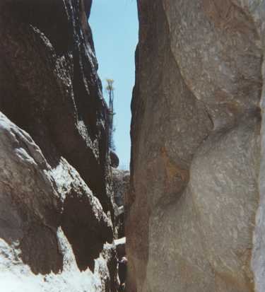 Passages over, under, or between the boulders make this ‘Nature’s Disneyland’! Can you see Lorenzo at the far end? (7-24-00)