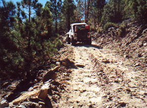 The Tasajera Road, like the Rubicon Trail has built-in vehicle ‘sizers’. Here Andrew’s CJ has a serious advantage over a Humvee!