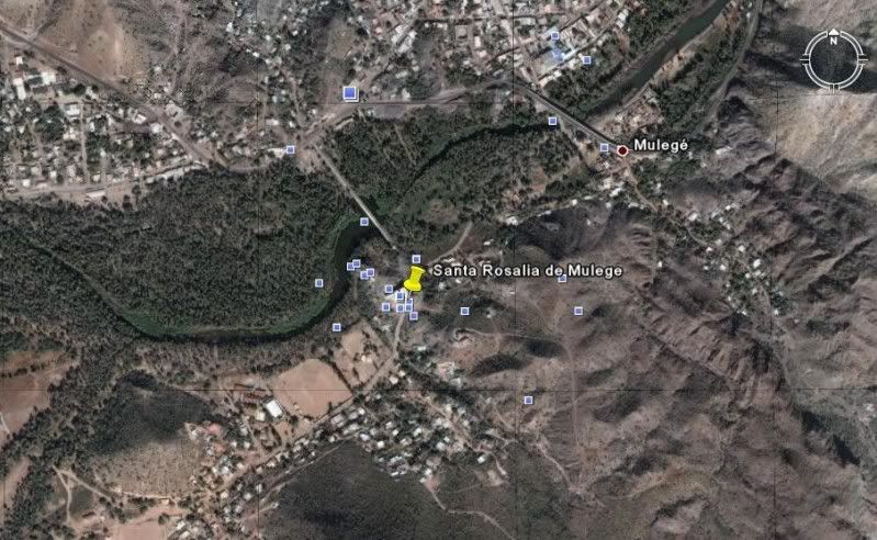 SANTA ROSALIA DE MULEGÉ 26°05’37.00″ -111°59’09.30″ On the south side of the river, just west of the highway bridge in Mulegé.