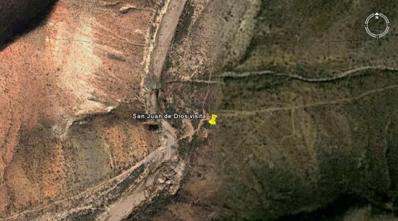 (Visita) SAN JUAN DE DIOS 30°10’57.61″ -115°10’04.50″ Located just past Rancho Las Palmas and above the east side of the arroyo, next to the road to Rancho El Metate, 22 miles from Hwy. 1.