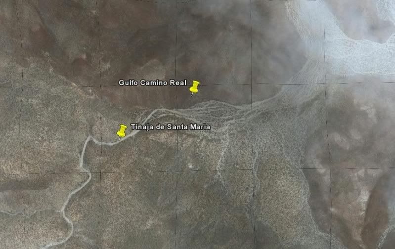 (Water hole near Golfo Camino Real) TINAJA DE SANTA MARIA 28°26’05.20″ -113°20’01.40″ Located south from the old road to San Francisquito, south of Bahia de los Angeles and just east of Rancho La Bocana (San Pedro).