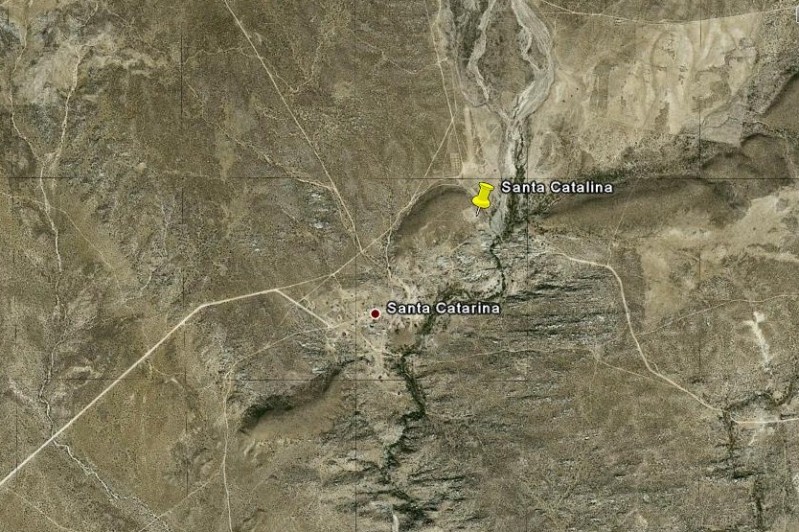 SANTA CATALINA 31°39’38.10″,-115°49’16.00″ Located on a hilltop overlooking a cemetery on the far side of the community of Santa Catarina, east of Ejido Independencia off Hwy. 3.