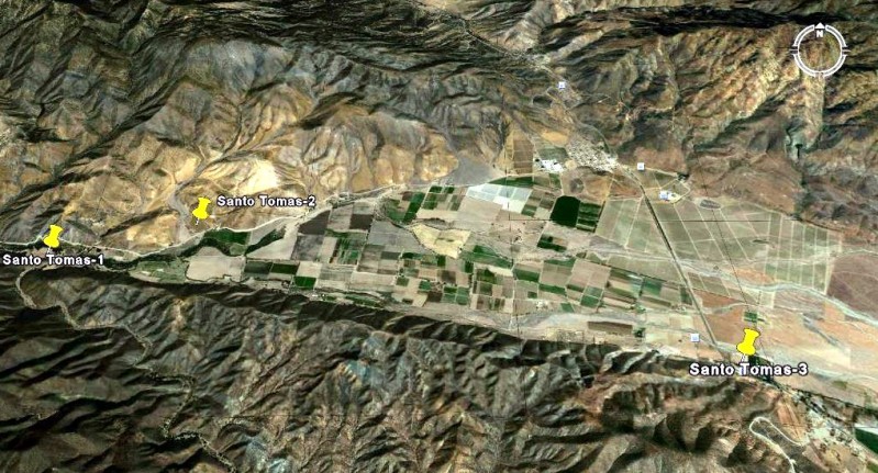 SANTO TOMAS-1 31°34’11.00″ -116°28’50.00″ Located by an oak grove picnic and camping area off the road to La Bocana, 3.9 miles from Hwy. 1. SANTO TOMAS-2 31°34’24.30″ -116°27’58.70″ Located north of the La Bocana road in a pepper field, 2.8 miles from Hwy. 1. SANTO TOMAS-3 31°33’30.00″ -116°24’48.90″ Located next to the El Palomar campground on Hwy. 1.