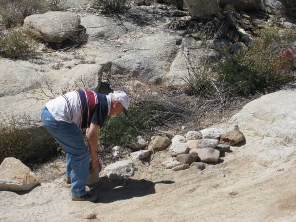 Neal Johns doesn’t let his many years stop him from tossing rocks to improve the road..