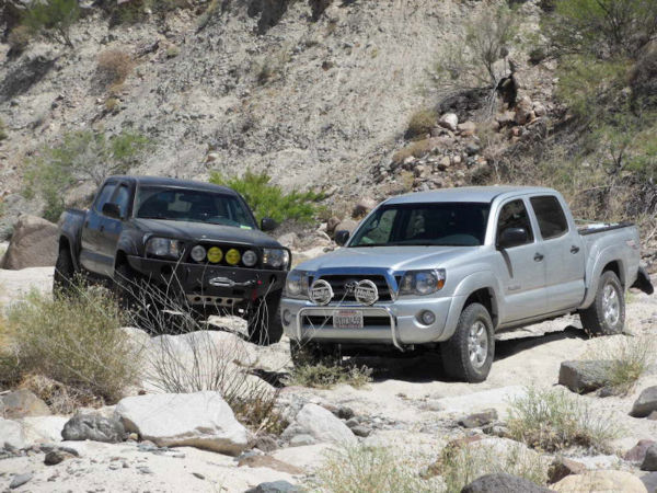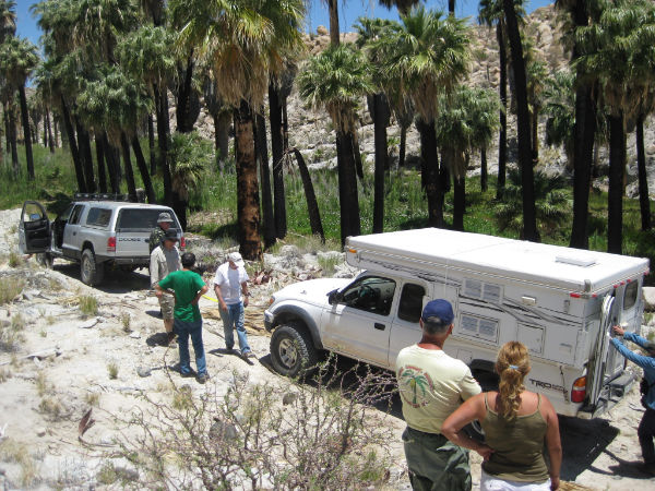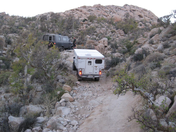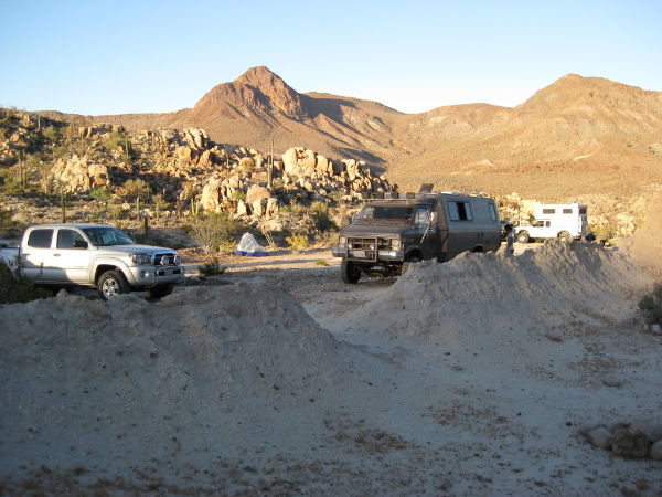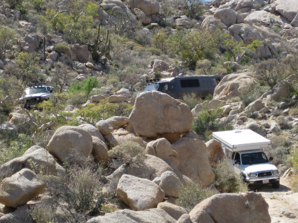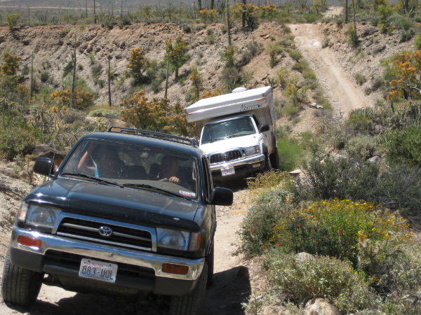Two new style Toyota Tacomas, one older Tacoma with a camper, a Toyota 4Runner, a Dodge Dakota, and a custom-built 4WD ‘motor home’ V-8 van (with front and rear differential lockers) made the journey in.
