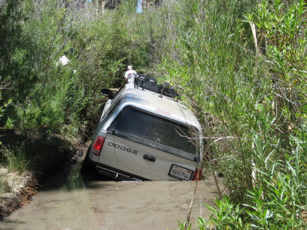CG’s Dakota in the deep water of the bog. Only Neal (with a blown differential) and Steve (with street tires and no rear locker) needed help getting through the bog.