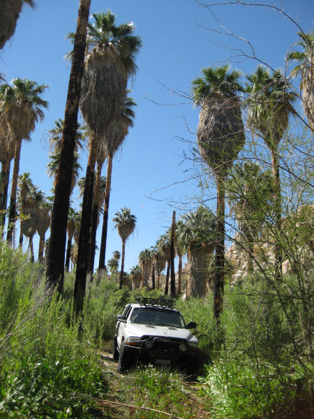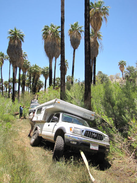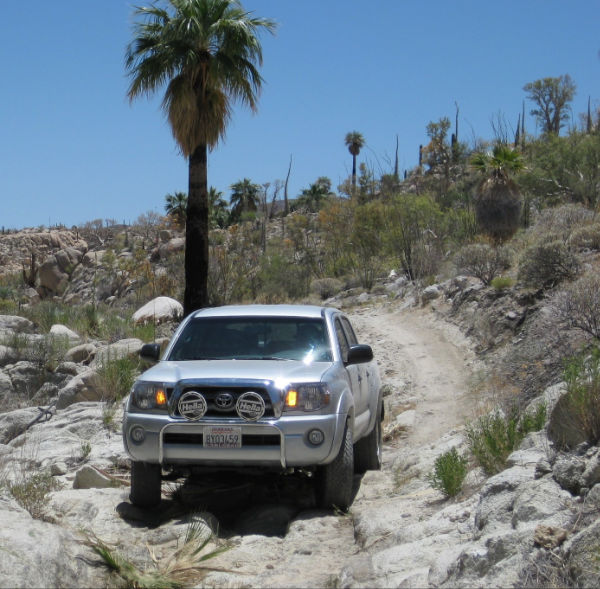 HB Murphy’s and David K’s 4WD Off Road Tacomas at the end of the drivable track in Arroyo Santa María. We hike on to see the Camino Real where it switchbacks up the canyon side.