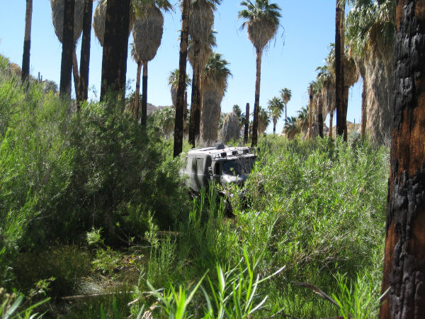 Following the Widowmaker, the road soon enters the bog where you drive right in the oasis water. Heavy winter rains of January, 2010 charged up the water table and made the bog the hardest part of getting to the mission.