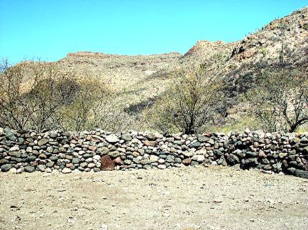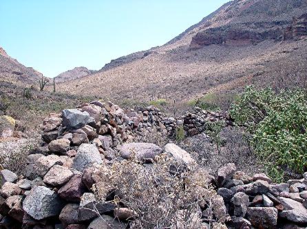 Rock wall at (deserted) Rancho San Juan (1 mi. northwest of San Gregorio). Baja Almanac N-27, R-1.