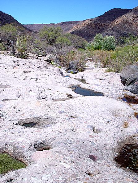 Tinajas (pools) hold water in the bedrock at El Aguaje.