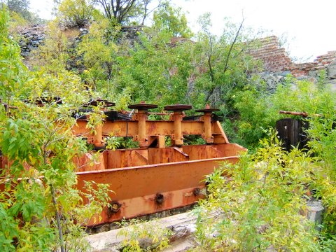 The railroad was begun in 1863 using mule drawn carts. A steam locomotive was in operation by the 1890’s running over 10 miles of track. 1918 was the last year of regular operation. Photo c Jack Swords