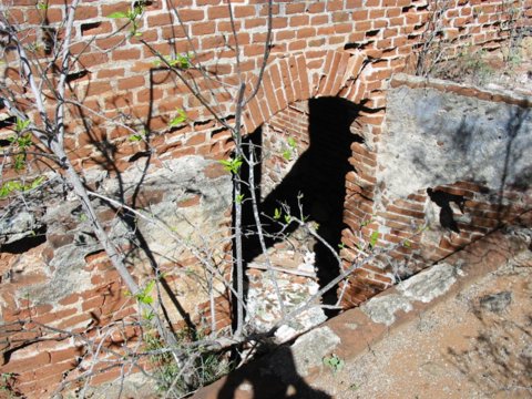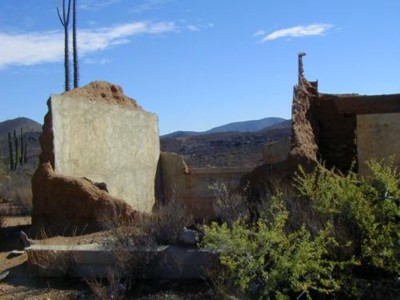 The following photos, from Jack Swords are very likely ruins of Ocio’s hacienda, dam, and other structures. Located about 30 miles south of La Paz at 23°45.08′, -110°5.70′ Photos are all copyright protected, 2005.