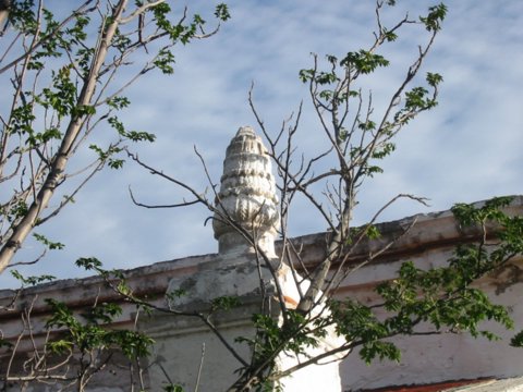 Many buildings are in the area, some newer built upon older foundations. Very old trees such as a giant mango and huge jacaranda are growing here.