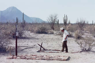 Desert Rat and Jesus examine the grave behind Dick Daggett’s .