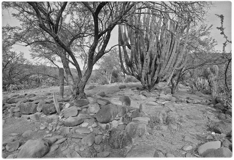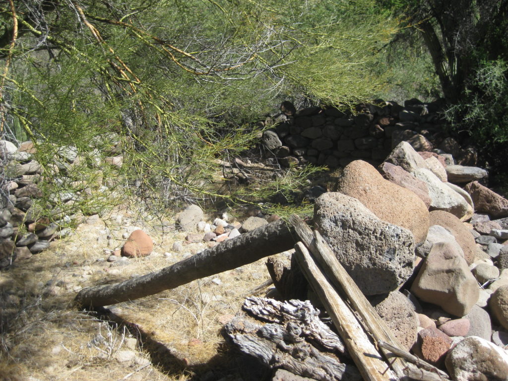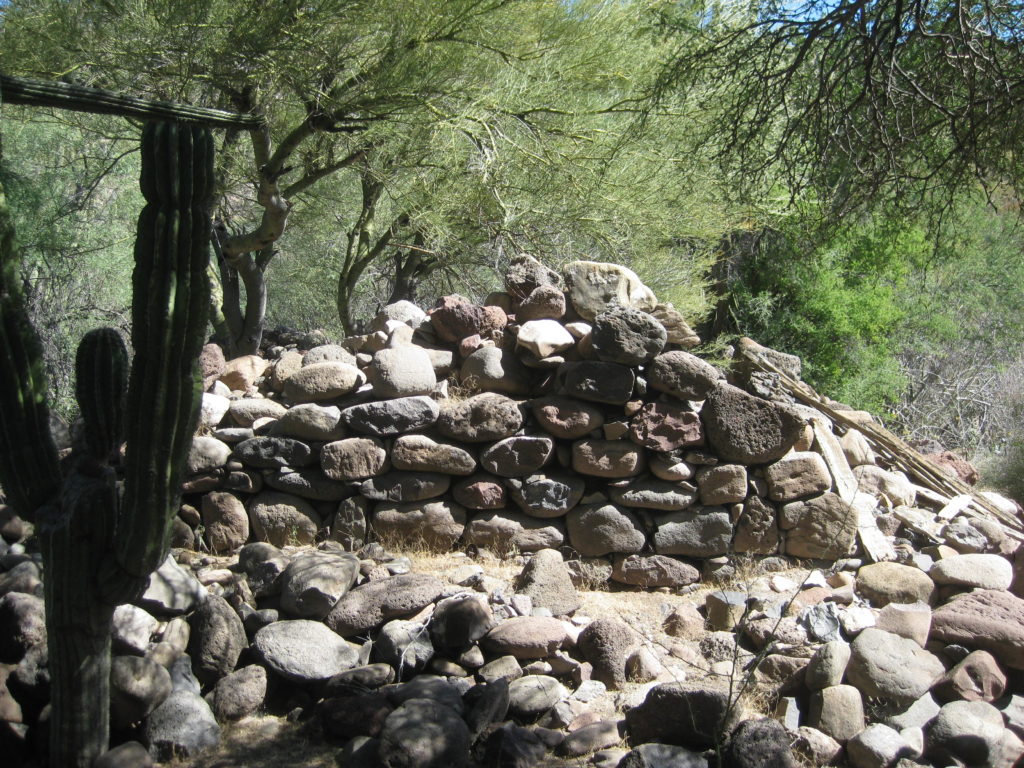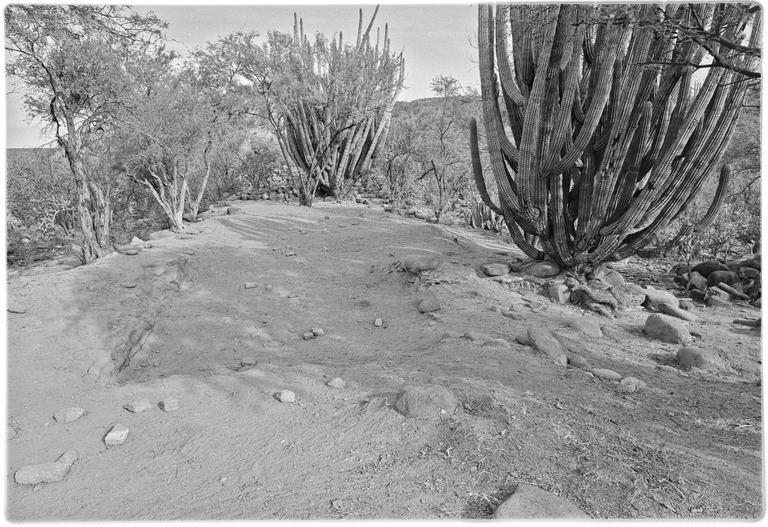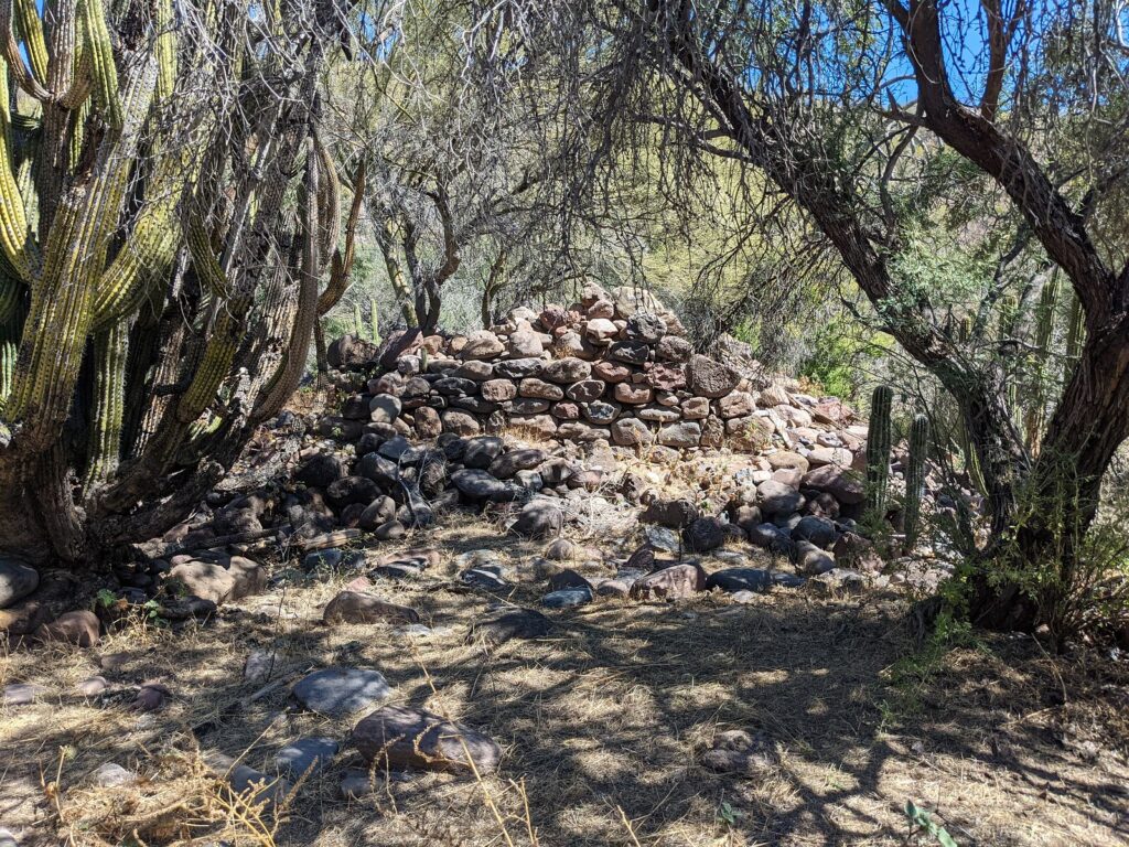 Access: (First site) Dirt road from the north via Rancho San Juan and 1 km. hike crossing arroyo twice. Ruins partially concealed by heavy brush and cactus growth. (Final site): Paved road from the south (BCS#53, km. 64.5) or unpaved roads, east from km. 27.5, near San Javier or southeast from San Isidro/ La Purísima.