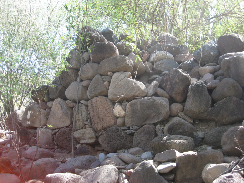 The first enclosed church building here was small and made of adobe blocks. It replaced a simple thatch-roofed shade structure made from local trees. Padre Mayorga hoped to construct a larger church, but a smallpox epidemic delayed its construction. Stone masons were not available, so the larger church was also made of adobe. It was built on a stone foundation and completed in October 1716. The footing can still be seen today. The new church and attached storeroom walls were nearly seventy feet long by twenty-one feet wide and ten feet high. The walls were three feet thick, so the interior width was only fifteen feet.