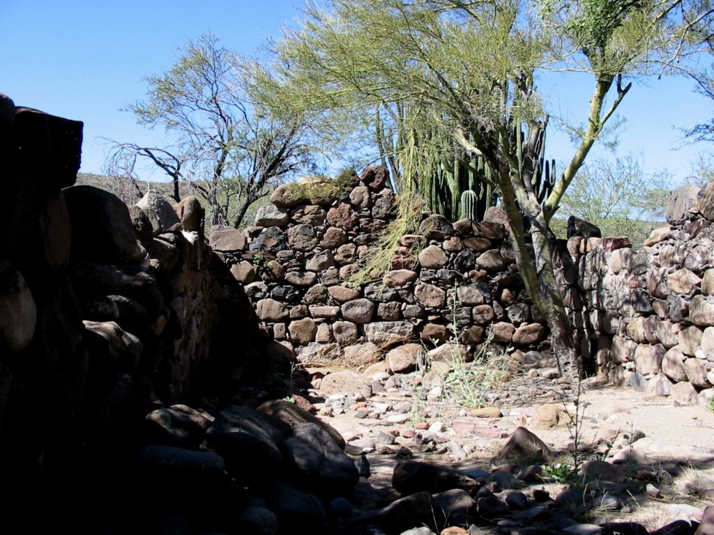 Photographs below are by Howard Gulick in 1956; Harry Crosby in 1990; Jack Swords in 2002; David Kier in 2017; and Octopup in 2023. Stone walls are the remains of Padre Mayorga’s mission residence.